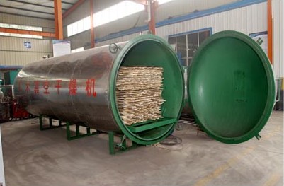 真空狀態(tài),主要利用真空狀態(tài)下水的沸點(diǎn)較低,蒸發(fā)速度加快,木材表面的含水率梯度增大,木材在干燥過程中,一方面表面水分向周圍空氣中蒸發(fā),另一方面內(nèi)部的水分不斷地向表面移動,所以在較低的溫度下加快了干燥速度,這樣就能保證木材的干燥質(zhì)量。而真空狀態(tài)是一種負(fù)壓狀態(tài),有一定吸水作用,與高頻的壓力梯度正好相似,也加速了木材芯部水分排出,此外,在低壓條件下,干燥介質(zhì)中的氧氣,因熱作用與氧化作用引起的物料變色少,基本上可以保持名貴木材的天然色澤。