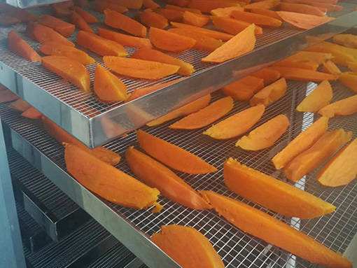 紅薯烘干要準確掌握好紅薯的干度,可用口嚼時軟而綿,這樣硬度為適宜。如果烘干過干,吃時嚼不爛,影響其品質,但烘干不到位,水分多,容易生霉腐爛。根據(jù)使用我司小型紅薯干烘干機的客戶反饋的情況,紅薯干的烘干溫度不宜超過55℃,要分階段烘干,中間要讓紅薯干回軟。